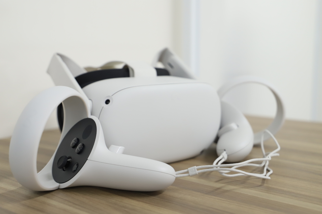 Meta Quest 2とは、Metaが開発した一体型のVRヘッドセットです。一体型なので、PCやスマートフォンとケーブルで繋いだりすることなくヘッドセット単独だけで動作します。また、ヘッドセットをかぶったまま前後左右自由に動くことができたり、VRの中でインタラクションがとれることが特徴です。そのため、本当に自分がバーチャル空間の中にいるかのような強い没入感を体験できます。