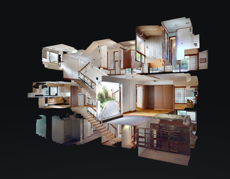 複数レンズと赤外線スキャナーを搭載した4Kの高画質カメラで建物の空間内を撮影し、同時にAI機能で撮影画像を自動合成処理して現実空間の3Dモデルを作成することができます。赤外線スキャンで正確な距離を測り、4K対応レンズによって高画質な画像撮影できるので、リアルな店舗・施設が持つ実際の雰囲気や距離感をバーチャルで忠実に再現することが可能です。